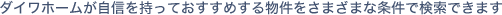 ダイワホームが自信を持っておすすめする物件をさまざまな条件で検索できます